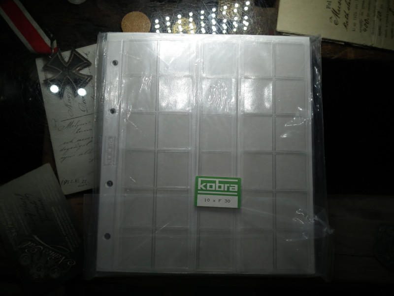 Kobra , Érmetartó , éremtartó , érme berakó lap ! 10 db 30 férőhelyes ! Ár / zacskó ( 10 lap , 10 elválasztó ) Új !