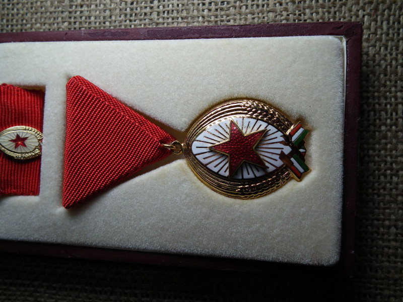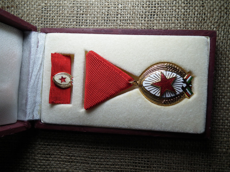 Munka Érdemrend arany fokozata szalagsávval , dobozban
