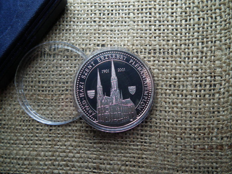 Szent Erzsébet Plébániatemplom , 1901 - 2001 , boldogok akik szívvel dúsan adnak , ezüst , díszdobozos érem
