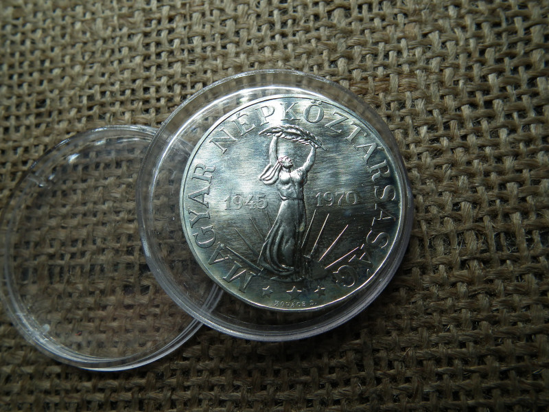 Az Ezüst 50 forint 1970 felszabadulás fémpénz kiváló állapotban érkezik a kollekcióba. A magyar numizmatika iránt érdeklődők számára igazi ritkaság lehet ez a darab, mely 1970-es évszámmal és felszabadulás témájával rendelkezik. Az ezüst anyagból készült 50 forintos érme színét az évek során kissé patinás hatás díszítheti, ami még inkább megnövelheti az értékét a gyűjtők szemében. Az 1970-es év emlékére vert ezüst 50 forintos érme exkluzív ajándék lehet minden numizmatikai gyűjtemény számára. Védjegyek: Magyar ezüst érme, 50 forint, 1970, felszabadulás, ritkaság, numizmatika, gyűjtemény, kollekció.