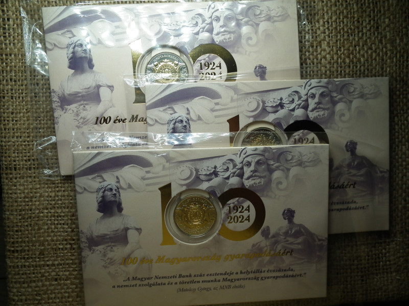 100 éves a Magyar Nemzeti Bank MNB 100 forint 2024 - első napi veret - 3 db sorszámkövető