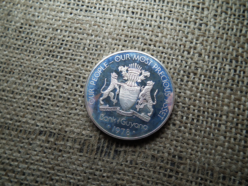 Guyana ezüst 5 dollár 1978 , dollars , PP ,Függetlenség