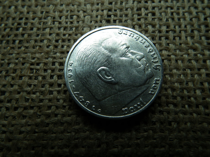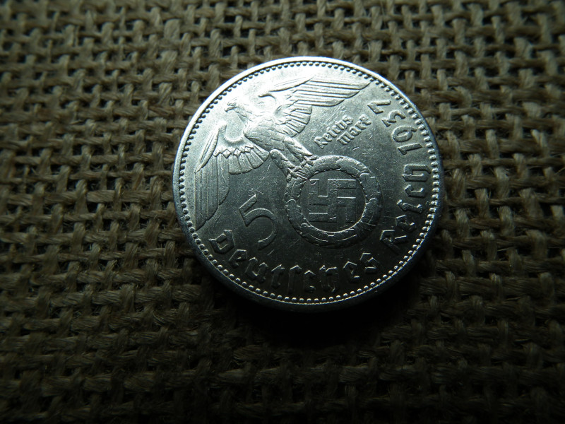 Birodalmi ezüst 5 márka 1937 D , Nagy sasos - horogkeresztes