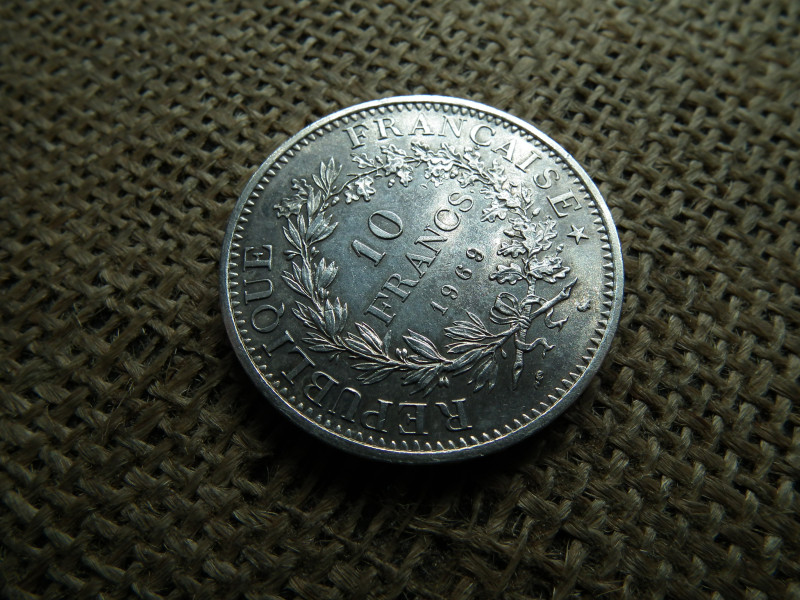 Franciaország , ezüst 10 francs 1969 , frank , extra , ritkább