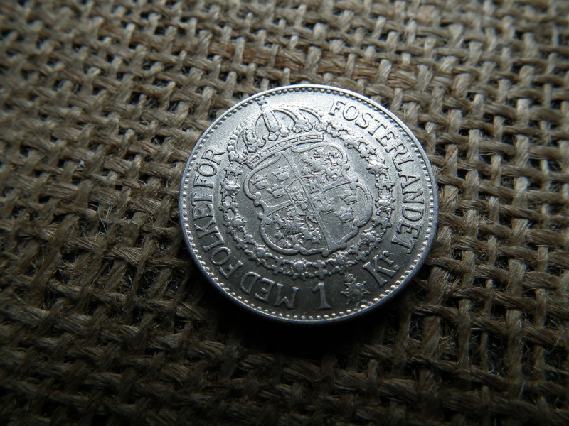 Svédország , ezüst 1 korona 1936 , V. Gusztáv