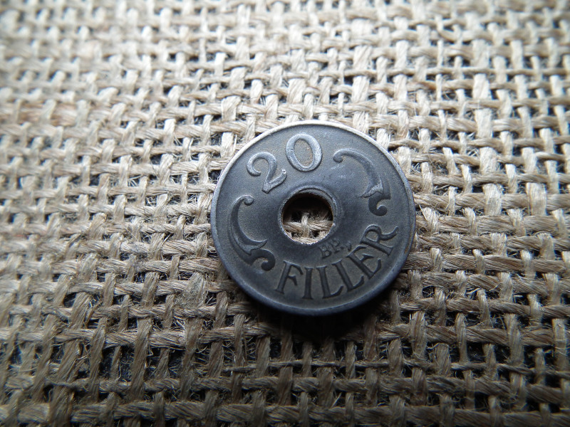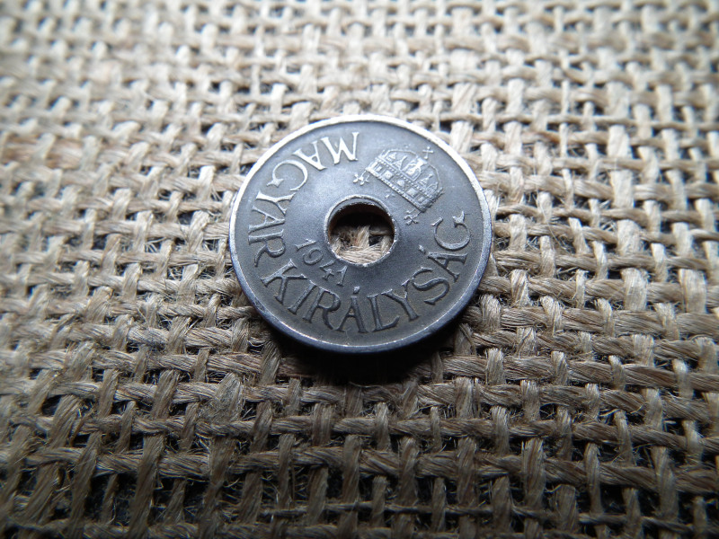 20 fillér 1941 , verdehibás , félrelyukasztott