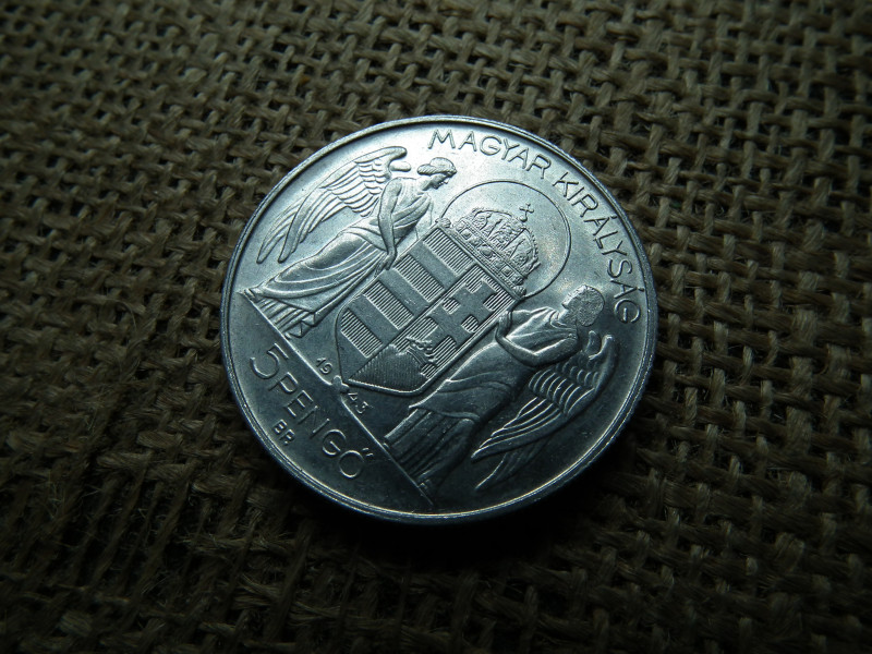 5 pengő 1943 , Horthy Miklós , Magyar címer ellenjeggyel
