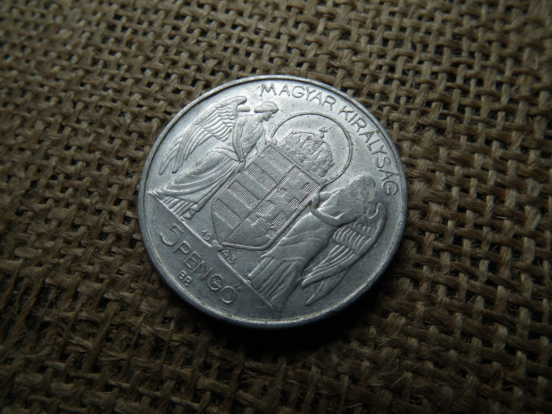 5 pengő 1943 , Horthy Miklós , Sarló kalapács ellenjeggyel