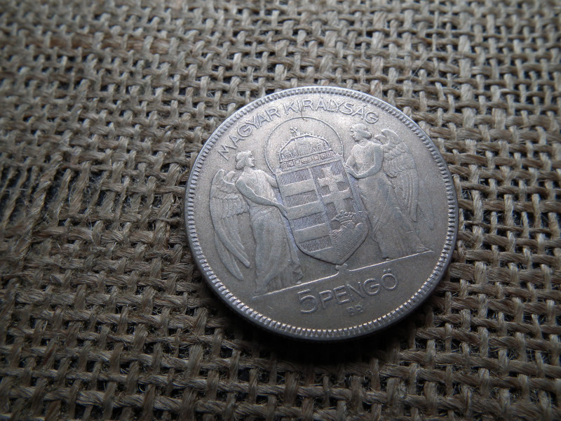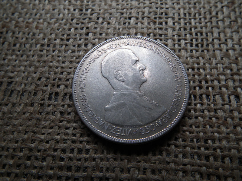Horthy , ezüst 5 pengő 1930 , még hajas