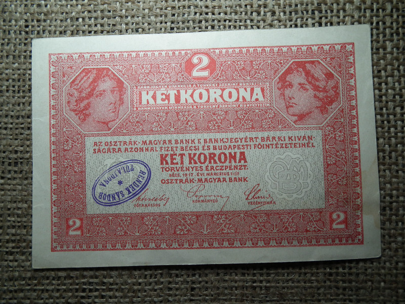2 korona 1917 , 7000 fölötti , hajtatlan , felülbélyegzett , ritka !