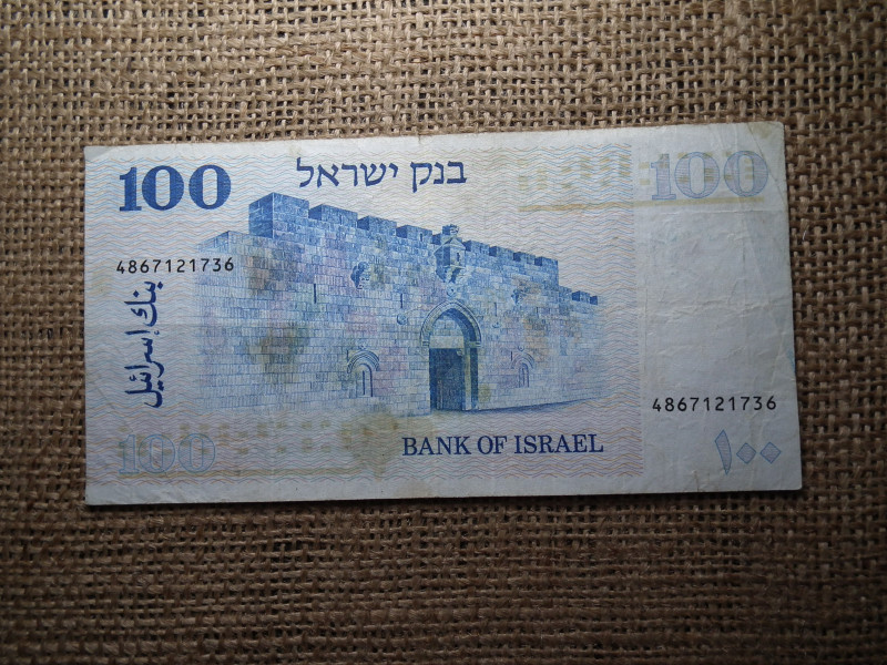 Izrael , 100 Israeli Pounds 1973 , font , Theodor Herzl & Zion Gate , A2
