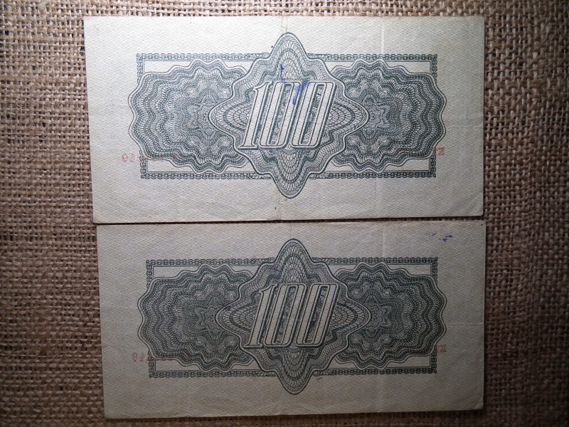 Csehszlovákia 100 korun 1944 , korona , vörös hadsereg , 2 db sorszámközeli !