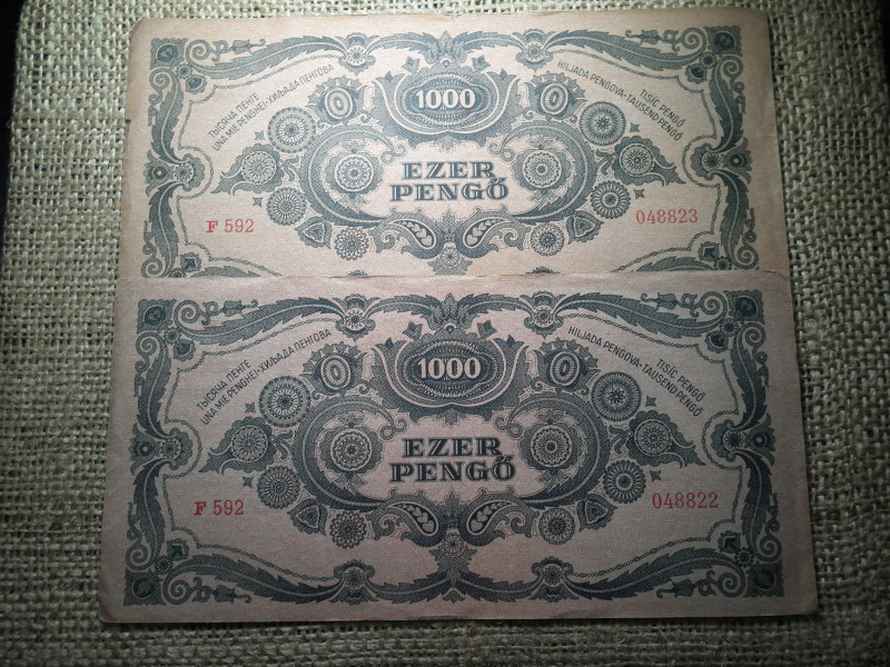 1000 pengő 1945 , 2 db sorszámkövető