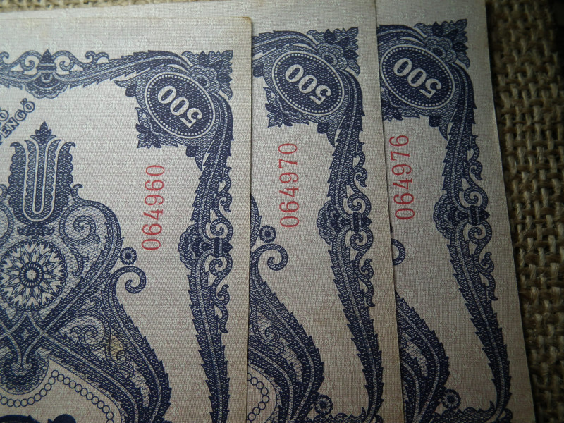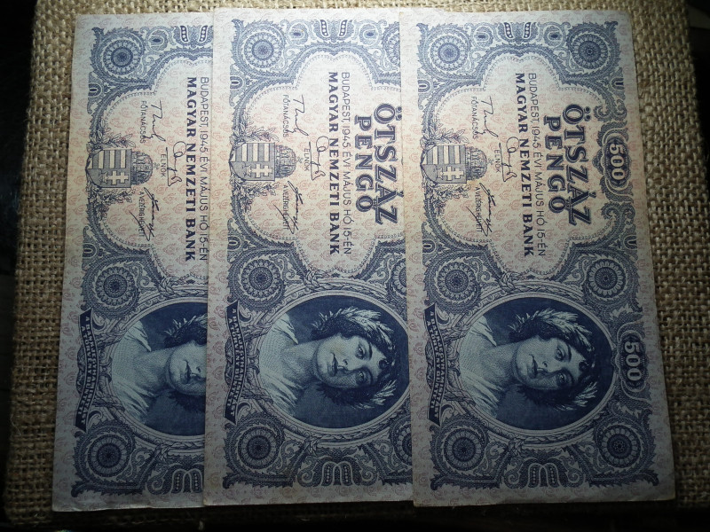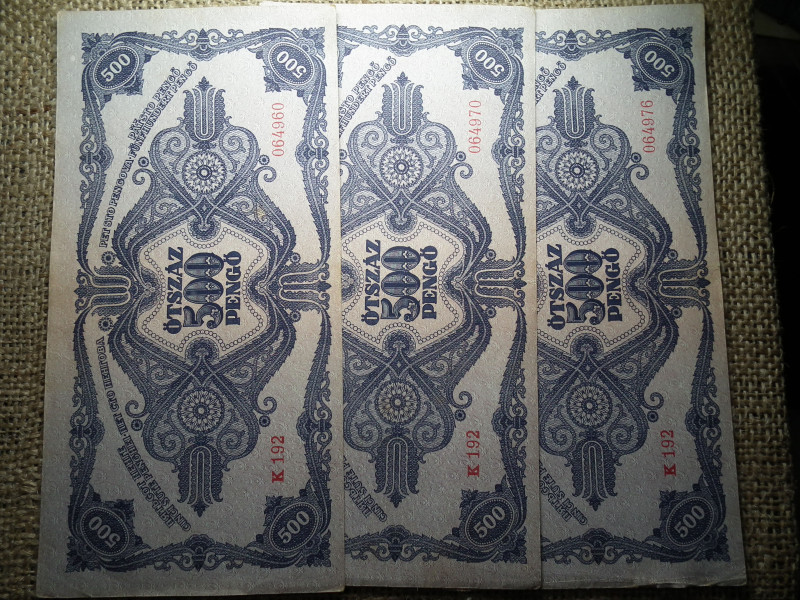 500 pengő 1945 3 db sorszámközeli