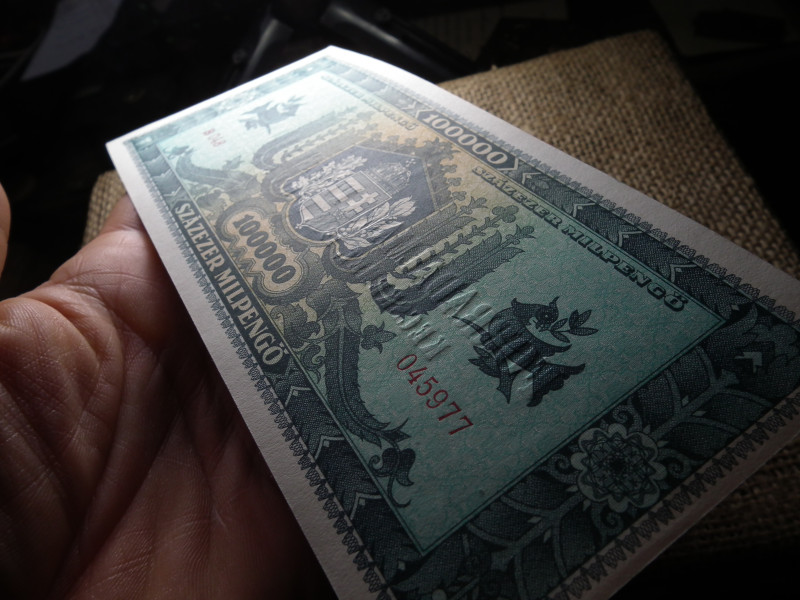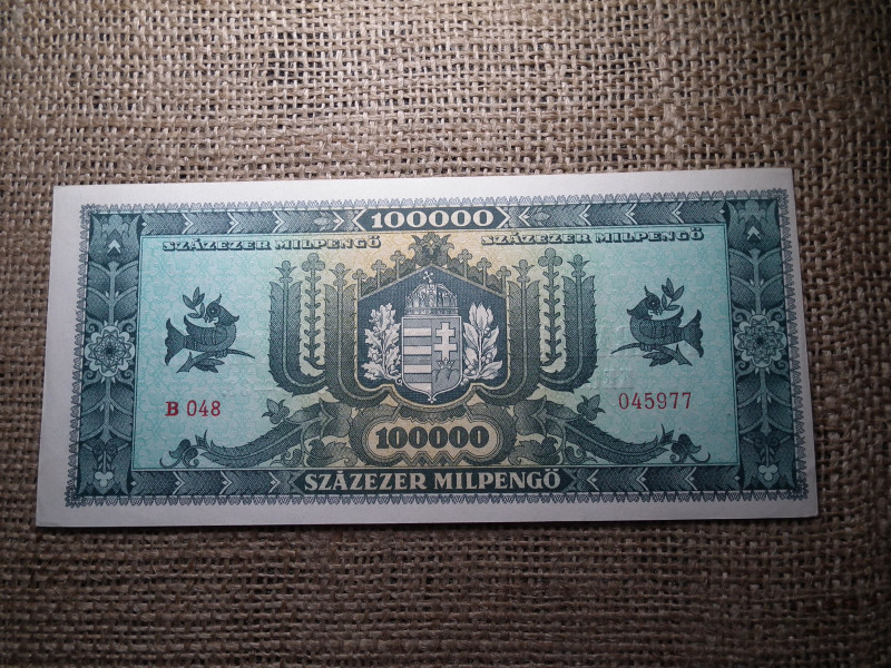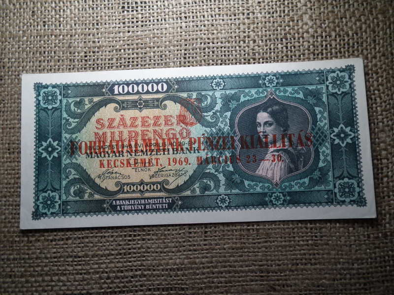 Százezer Milpengő 1946 , hajtatlan , Forradalmaink pénzei kiállítás Kecskemét 1969