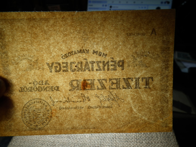 Tízezer adópengő 1946 , Nem kamatozó Pénztárjegy ! Nagyon ritka , üres hátlap , nagyon szép !