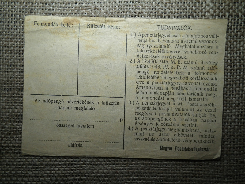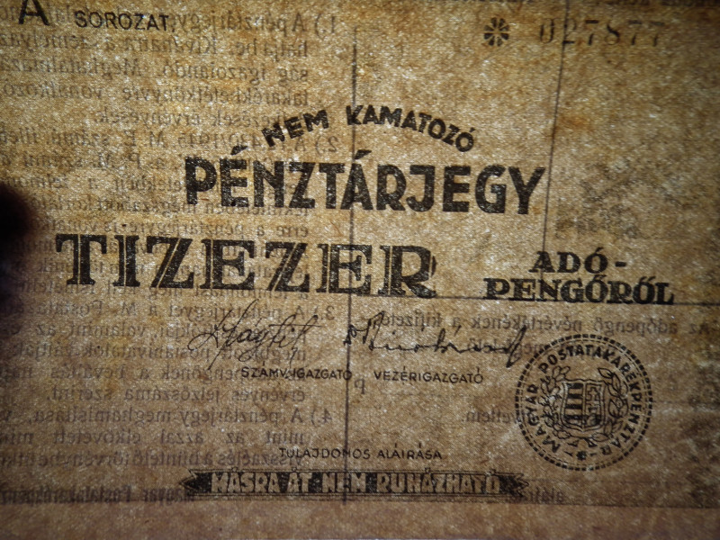 A Tízezer Adópengő 1946 pénztárjegy egy ritka numizmatikai darab, mely a magyar pénzügyi történelem fontos emléke. Eredeti formájában előléptetett nyomtatási technikával készült, megőrizve az akkori idők jellegzetes stílusát és minőségét. Az 1946-os évszám jelzi az időszakot, amikor ezeket a pénztárjegyeket kibocsátották, és az Adópengő neve utal az akkori pénznemre. A Tízezer Adópengő 1946 pénztárjegy egy kivételes kollekció része, mely csillogó állapotával és részletes grafikáival bármelyik numizmatikai gyűjteményt díszíti. Az ilyen típusú papírpénzek az összegyűjtők körében különlegesnek számítanak, mivel visszahozzák a múlt hangulatát és gazdag történelmi hátteret rejtik magukban. Egy igazi numizmatikai kincs a Tízezer Adópengő 1946 pénztárjegy, ami értékét az idő múltával csak növeli. Ne hagyja ki ezt a lehetőséget, hogy egy ilyen egyedi darab a saját gyűjteményének részévé váljon!