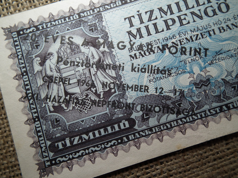 Tízmillió milpengő 1946 , 20 éves a Magyar forint , Pénztörténeti kiállítás Cspel 1966