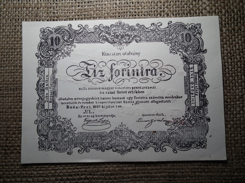10 forint 1849 - Szemere - Pécs 1964 , makkos vízjeles , Zsolnay