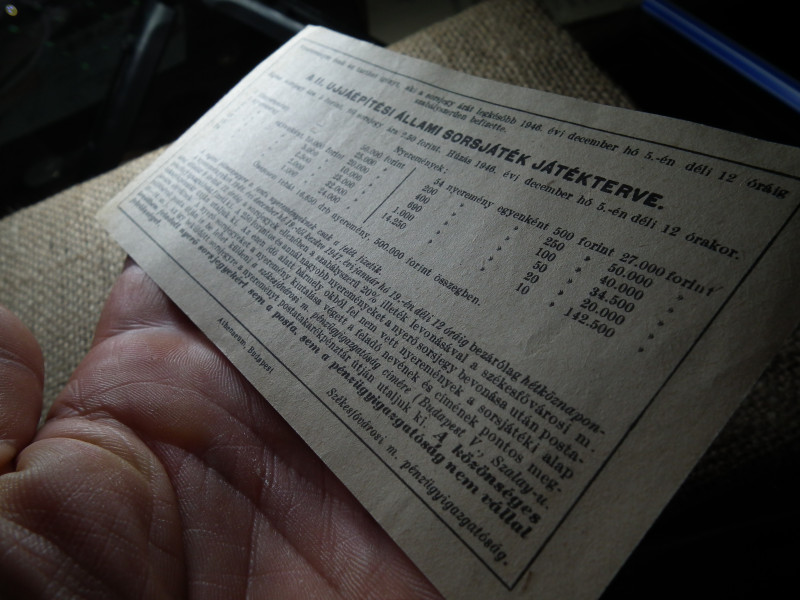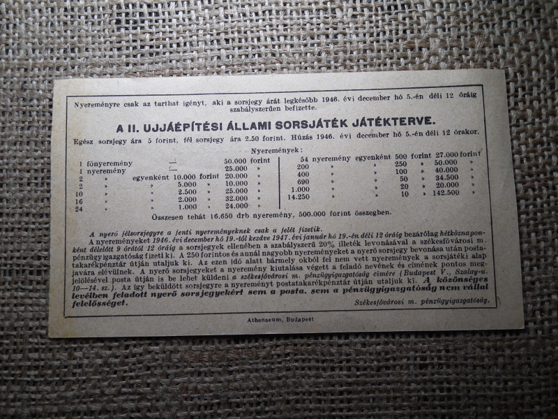 Fél-sorsjegy 1946 - II. újjáépítési állami sorsjáték , hajtatlan