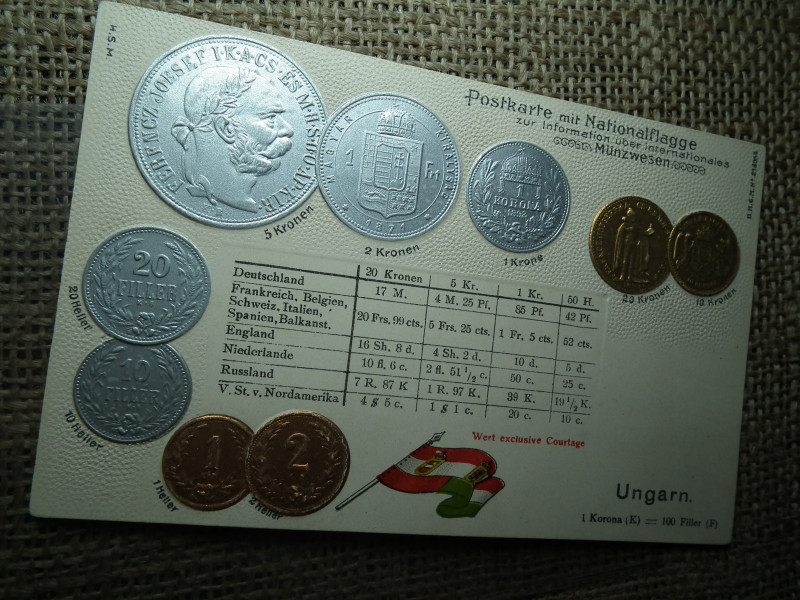 Ausztria - Magyarország érmék dombornyomott pénzes levelezőlap ! Korona rendszer ! Ritka