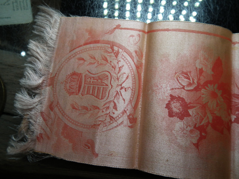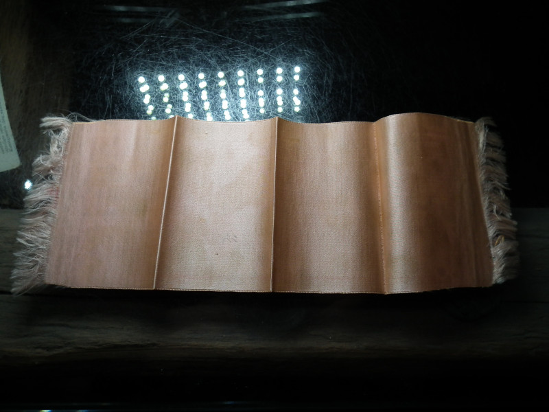 Selyem könyvjelző az ezredéves kiállításra, vörös-barna , 1896 , kb 28x9 cm