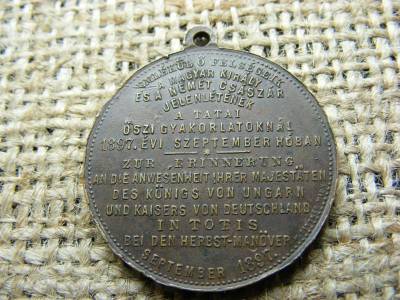 Ez a történelmi emlékérem 1897-ben készült, hogy megörökítse Ő Felségeik, a magyar király és a német császár jelenlétét a tatai őszi gyakorlatokon. Az érme Ferenc József és Károly tiszteletére készült... tovább