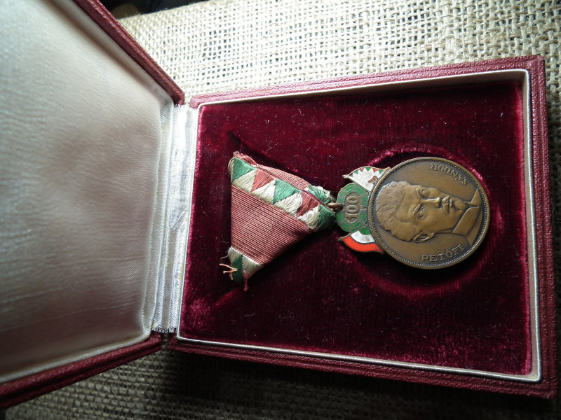Petőfi 100 , Zománcozott emlékérem 1948 - eredeti szalagján , eredeti dobozában ! 1848 ! A néppel tűzön vízen át !