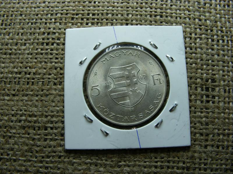 Ezüst 5 forintos érme, 1947, verdehibás, elfordult