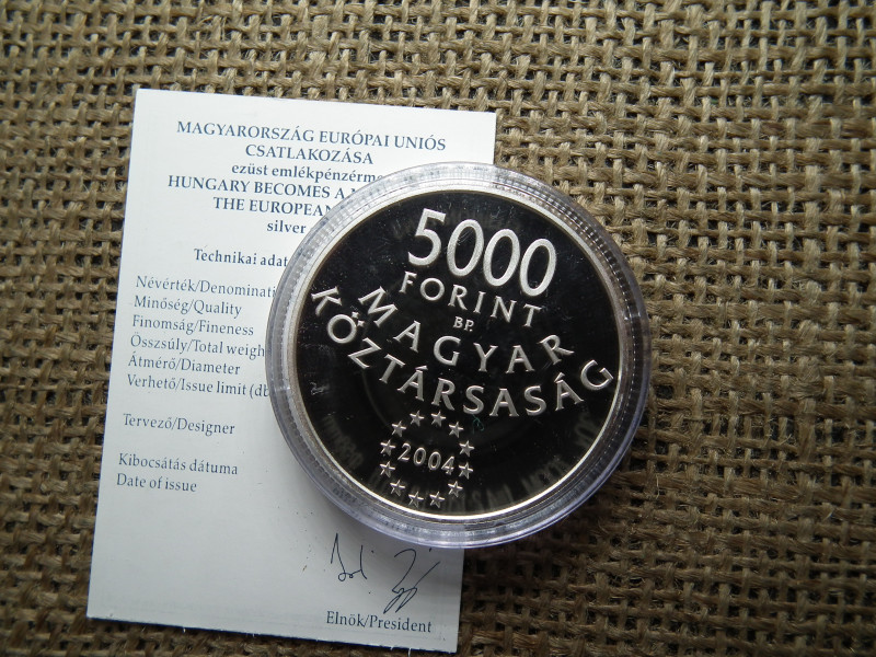 UNIÓS CSATLAKOZÁS 5000 FORINT 2004 EZÜST PP + certi