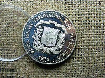 Dominikai Köztársaság 10 Pesos, 1975, PP Ezüst