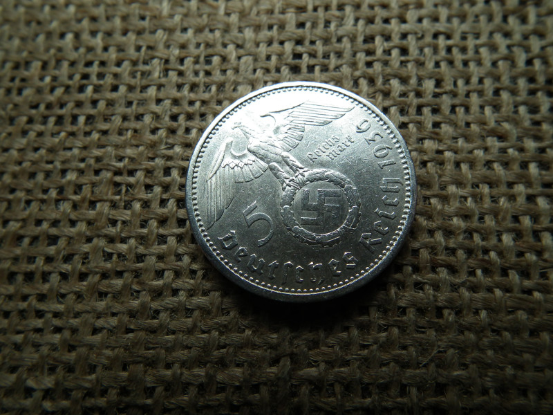 Birodalmi ezüst 5 márka 1936 A , Nagy sasos - horogkeresztes