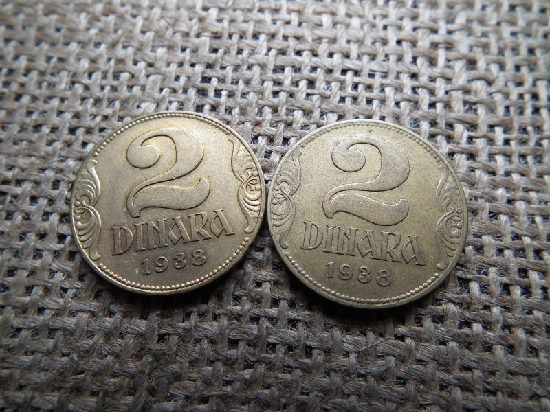 Jugoszlávia 2 Dinara 1938 , dinár - Petar II nagy korona és ritka kis korona !