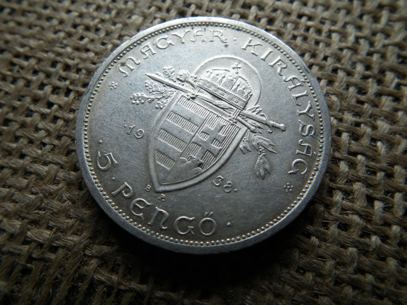 5 pengő 1938 , Szent István , ezüst