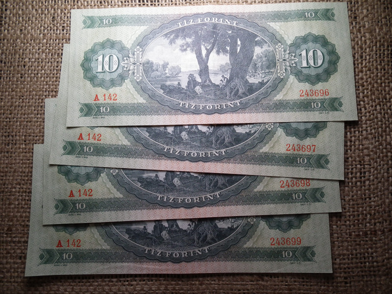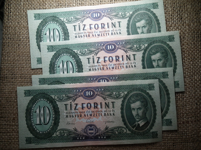 10 forint 1962 , vízjeles , ritka , 4 db sorszámkövető