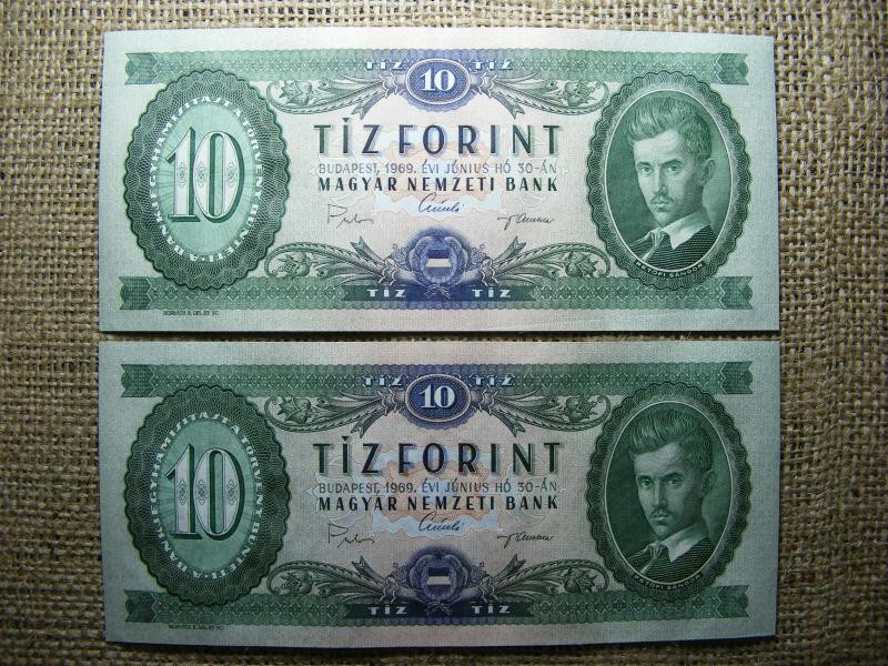 10 forintos bankjegy, 1969, 2 db sorszámkövető, EF
