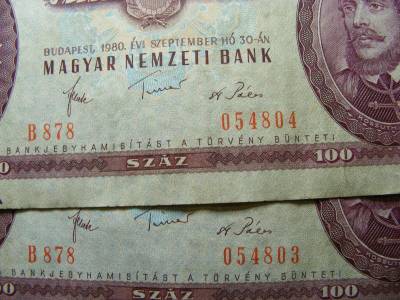 100 forintos bankjegy, 1980, 2 db sorszámkövető