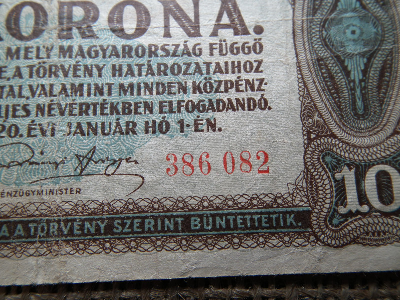10 korona 1920 , ritka , sorszám között nincs pont !