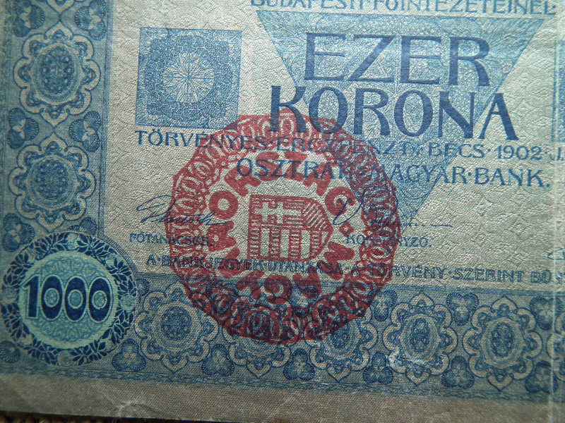 1000 korona 1902 , felülbélyegzés ! Felülbélyegzett ! Magyarország
