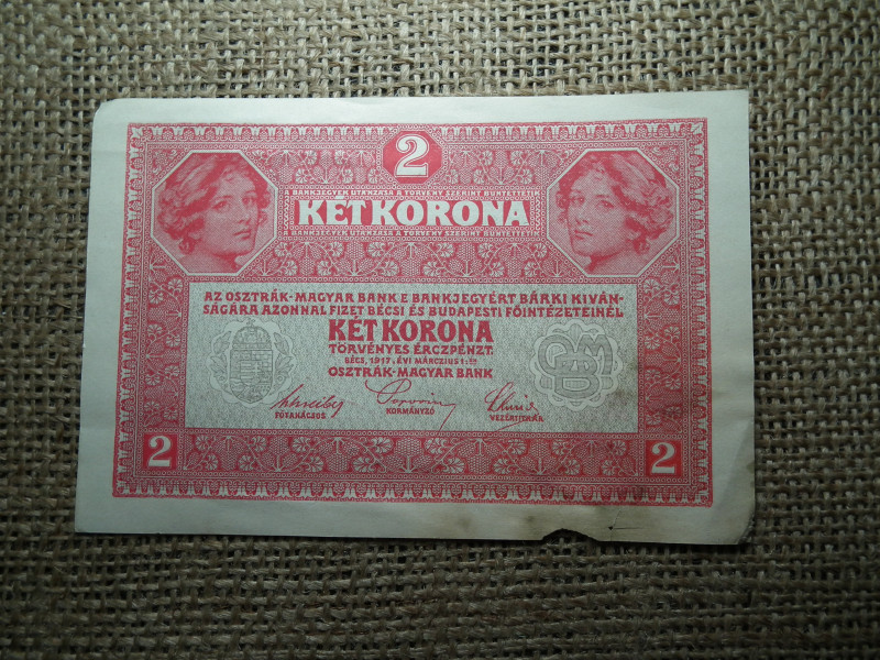 2 korona 1917 , sorozatszám színe eltér , hibás