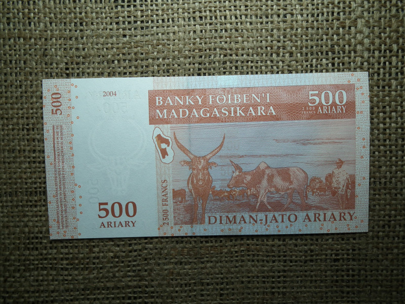 Madagaszkár 500 ariary 2004 , 2500 francs , frank , UNC , A1