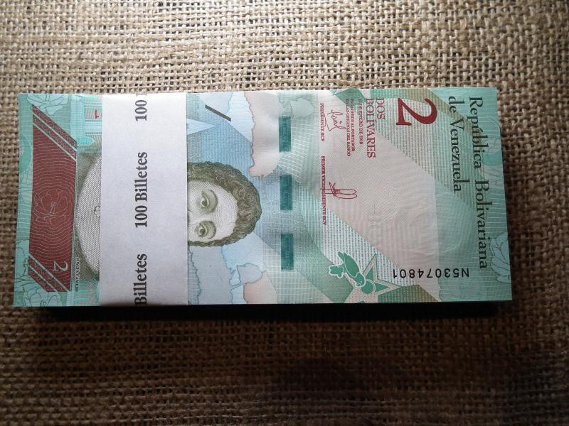 Venezuela 2 bolivares, 2018, 100 db banki köteg