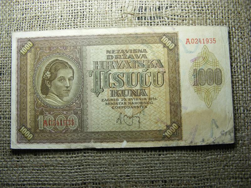 1000 kuna, 1941, horvát papírpénz