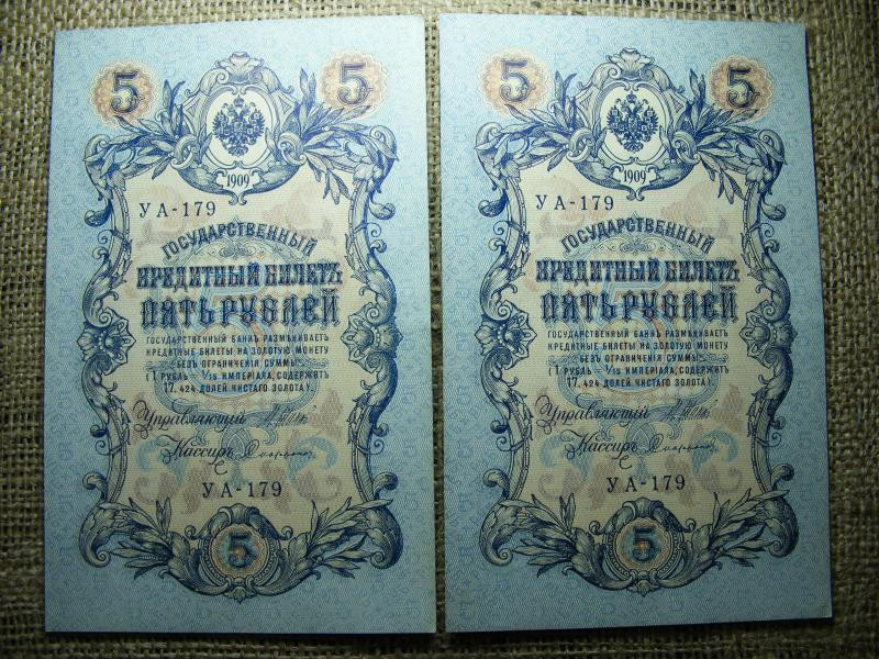 5 rubel bankjegy, 1909, sorszámkövető pár