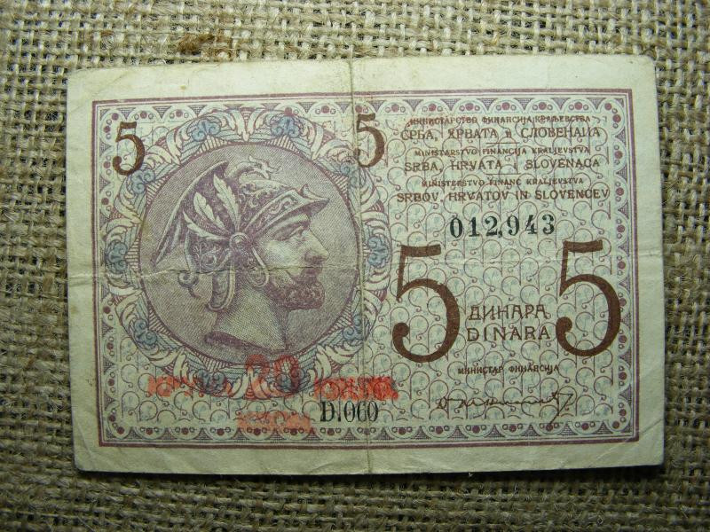 Jugoszlávia 5 dinara bankjegy, 1919, 20 kuna