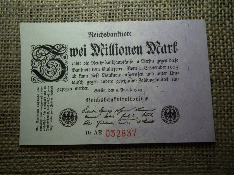 Németország 2 millió márka 1923 , hajtatlan