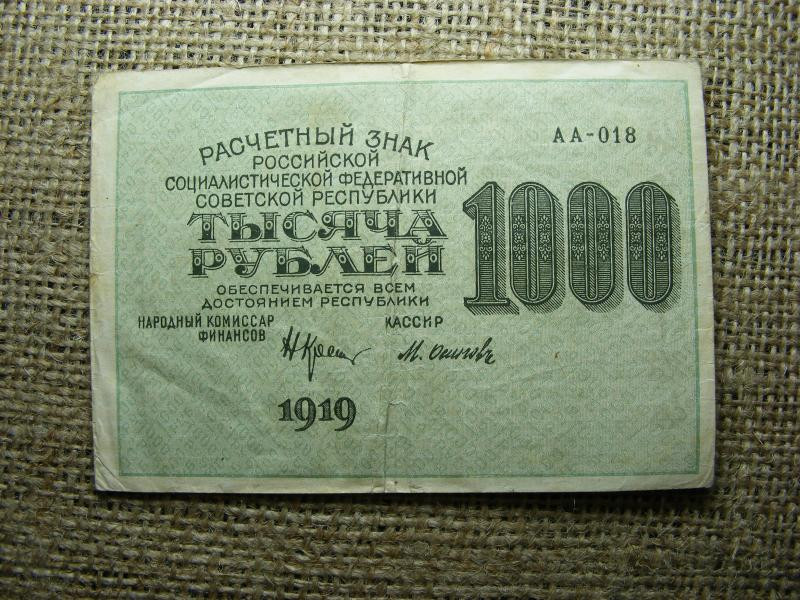 Oroszország 1000 rubel, 1919, függőleges vízjel