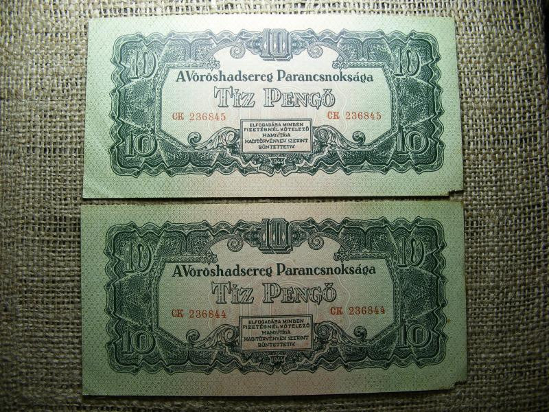 10 pengő, 1944, Vörös Hadsereg, 2db sorszámkövető