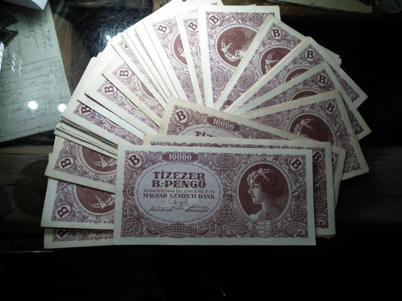 100 db , nagyon szép Tízezer B.-pengő 1946 , ritkább ! 10000 , extrák