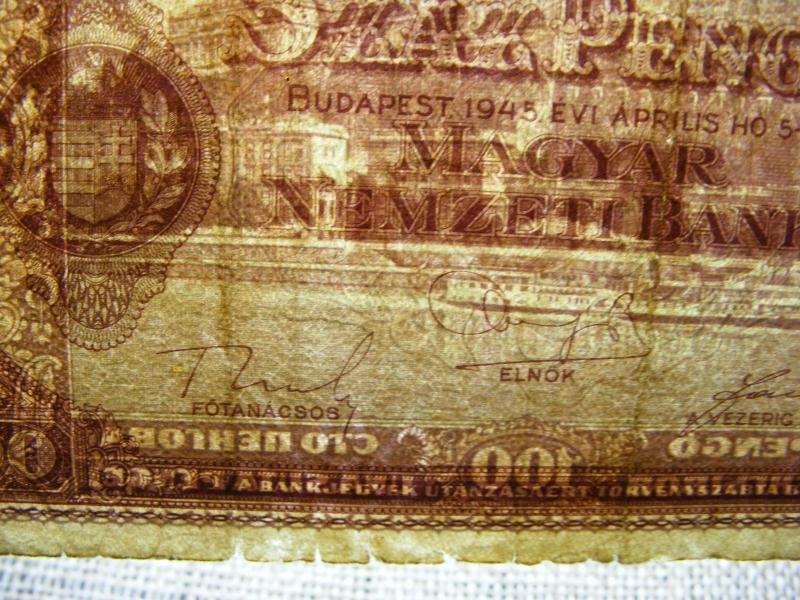 100 pengő, 1945, makkos vízjel